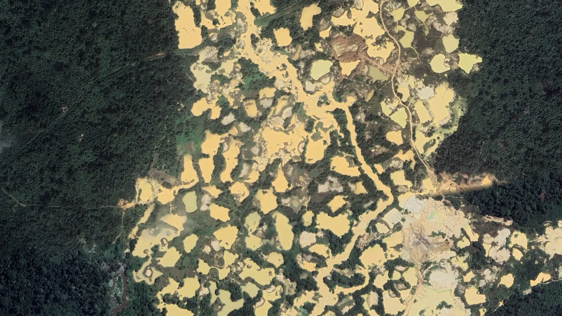 We sought to verify this information and assess the true extent of these illegal mines. We identified the land footprint left by mining operations in southwestern Ghana, the epicenter of the gold rush. Then we compared it to the GPS data from the Ghanaian government’s official mining concessions. Observing the territory from above, the results proved alarming: more than three-quarters of the identified past or present mining operations were found to be illegal. The devastation covers an area equivalent to twice the size of Indore. Forests, rivers, and wildlife have been destroyed in complete illegality.