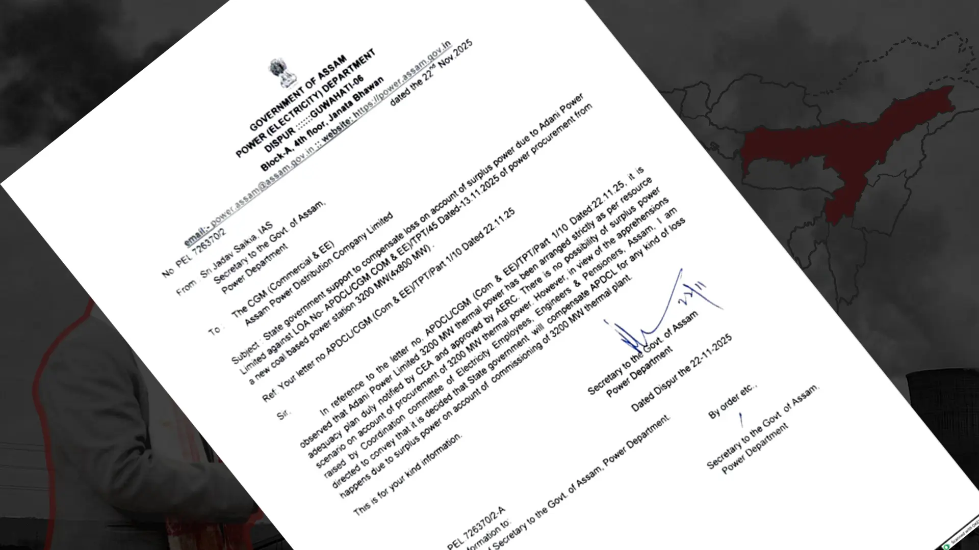 The Collective accessed the letter from secretary to government of Assam in the Power Department, Jadav Saikia, to APDCL bosses.