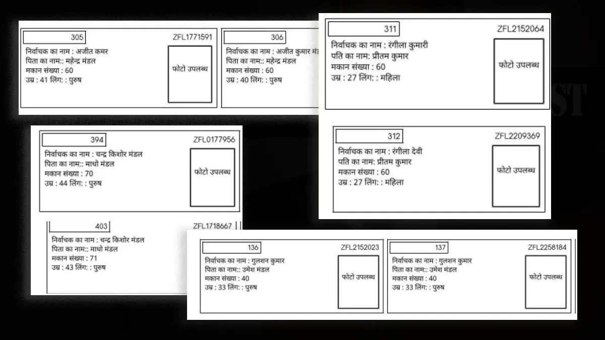In Gopalpur assembly constituency in Bhagalpur district, at booth 65, there lives 33-year-old Gulshan Kumar. With all the same details, he, like three other people, continues to hold duplicate voter IDs in the final list. Check the image below.