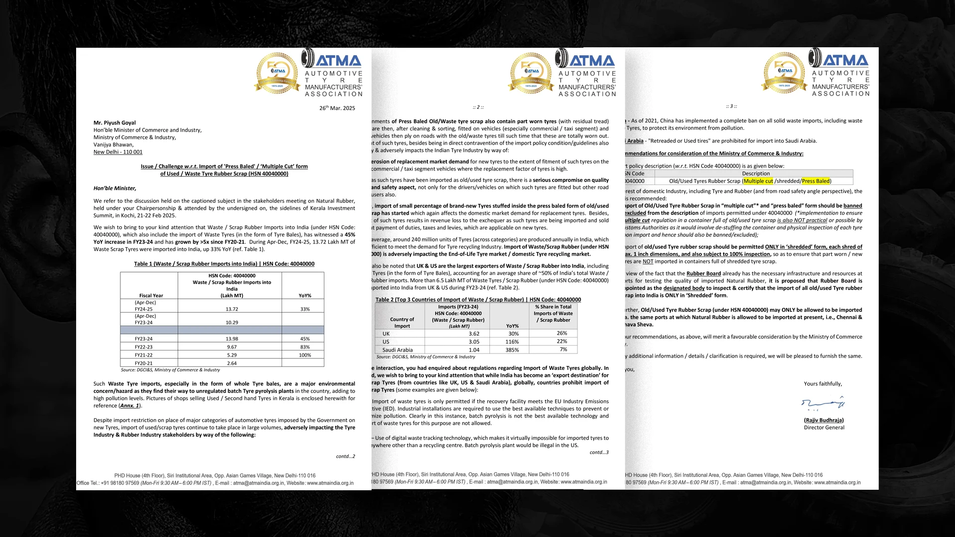 ATMA is the apex industry body for tyre manufacturing. It also warned that the number of waste tyres in the Indian market far exceeded the country’s annual recycling capacity. In a letter to the Ministry of Commerce in March 2025, it wrote that these imports were “overburdening India’s fragile recycling infrastructure” and increasing pollution levels. It urged the government to ban the import of waste tyres.